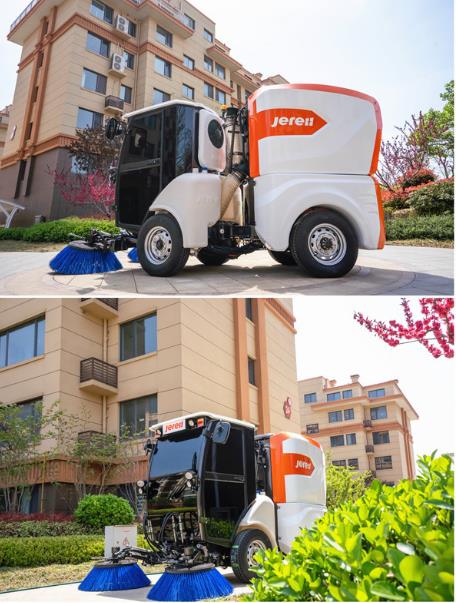 在展会现场,杰瑞环境科技发布了云蜂系列产品中的“清蜂”——纯电动扫路机。它的体积小巧,车身仅1.2米宽,转弯半径2.7米,能够灵活进入到狭窄的巷区,与深度清洁车互为补充,全方位保障城市环境。