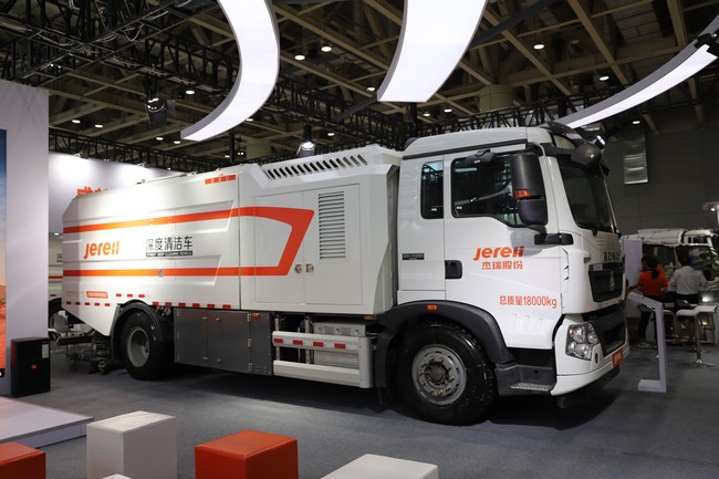 场馆外,杰瑞18吨电驱深度清洁车户外路演吸引了众多行业专家及客户的驻足观看。该电动深度清洁车结合电驱底盘,真正实现了纯电动,具有零污染、零排放、低噪音、作业稳定等优势,清洁力度强劲,通过电机直驱的高压旋转喷射技术,“以克论净,路见本色”的清洁效果得到了现场一致好评。